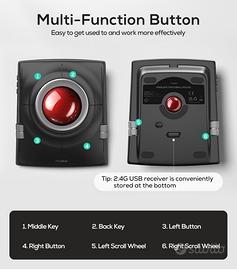 Mouse trackball wireless Nulea, con un diseño ergonómico y esfera de 55 mm para un control preciso.