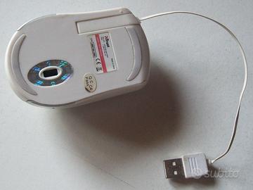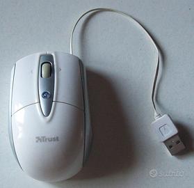 Mouse ottico TRUST, da computer portatile in quanto dotato di cavo estendibile a molla che si ritira all'interno del case.