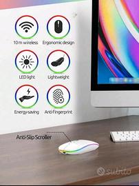 - [Compatibilità universale DESIGN ERGONOMICO]: il comfort e l'ergonomia del mouse, il suo design appositamente sagomato che si adatta comodamente alla mano, offrendo un'esperienza di gioco o di lavoro più confortevole e riduce l'affaticamento anche in sessioni prolungate. Mouse wireless portatile ricaricabile per Windows, Mac e Linux, adatti per laptop, PC, laptop, computer, MacBook e altri dispositivi.