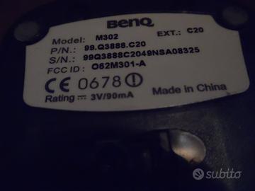 UN MOUSE PER COMPUTER FUNZIONANTE NERO sia per computer fissi che portatili WIRELESS IL MOUSE MA VA COLLEGATO IL SUO DISPOSITIVO (che si vede nella prima foto) e va con 2 batterie AA il mouse (pile non comprese),entrambi Marca BENQ,Modello mouse M302 (CE),Modello Dispositivo per il mouse con attacco doppio (basta attaccarne uno al computer) o la SPINA USB o L'ALTRA ROTONDA (attacco rotondo vecchio che c'era nei vecchi mouse) AM805 (CE),ENTRAMBI FUNZIONANTI,COMPATIBILI CON VARI COMPUTER WINDOWS (io l'ho testato e provato con windows 7 e 10 e altri),NON HA ROTTURE NE DIFETTI,vendo causa ho troppi mouse che non uso.