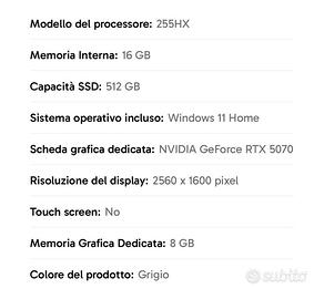 Scheda grafica dedicata: NVIDIA GeForce RTX 5070