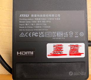 MSI Docking Station Gen 2 USB C funzionante e con alimentatore originale da 100W. Incluso supporto verticale. Manca scatola originale e istruzioni. Caratteristiche: cavo usb c per pc, porta alimentazione, ethernet, usb c DP, hdmi, DP, x3 usb a, usb c, jack audio. Per le caratteristiche complete si rimanda al sito del produttore.