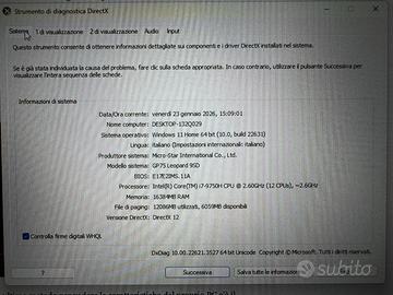 Vendo bellissimo Portatile da gaming MSI GP75 Leopard 9SD per inutilizzo.