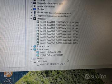 Tastiera perfetta, Italianizzata con Stikers scheda tecnica ModelloMSI GE72 6QD Schermo17,3" (1920X10800) FULLHD PressoreIntel Core I7-6700HQ CPU @ 2.60GHz Salute della batteria40% Memoria16GB Disco Rigido512 SSD DVDSI Scheda Video DedicataNVIDIA GeForce GTX 960M Intel HD Graphics 530 InstallatoWindows 11 ( Antivirus , Chrome ....)