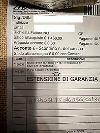 Vendo notebook MSI Katana 17 B13VFK-033IT acquistato il 19/10/2025, praticamente nuovo e usato pochissimo, completo di estensione ufficiale di garanzia a 3 anni (il primo anno include copertura totale per danni accidentali). È una vera occasione!