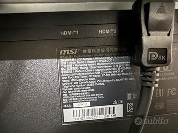 MSI MAG 345CQR 34" UWQHD Curved - Come NUOVO (Fattura) Vendo fantastico monitor MSI MAG 345CQR, un'esperienza ultrawide immersiva di altissimo livello. Il monitor è stato un regalo di Natale 2025, quindi ha pochissimi mesi di vita ed è praticamente indistinguibile dal nuovo.Lo vendo solo per passaggio a configurazione superiore (multi-monitor). Caratteristiche Principali: Display: 34 pollici Ultrawide (21:9) – perfetto per gaming e produttività. Risoluzione: UWQHD ($3440 \times 1440$) per una definizione cristallina. Curvatura: 1000R, la più avvolgente sul mercato, ideale per ridurre l'affaticamento oculare. Refresh Rate: 180Hz per una fluidità estrema in gioco. Tempo di Risposta: 1ms (GtG) – addio a scie e ghosting. HDR Ready: Colori vividi e neri profondi.Condizioni e Garanzia: Stato: Perfetto, nessun pixel morto o difetto estetico. Documentazione: Fornisco fattura d'acquisto originale (dicembre 2025) per la garanzia residua. Accessori: Inclusi cavo di alimentazione, cavo video e scatola originale (se disponibile). Prezzo: 250€ Leggermente trattabile se concludiamo rapidamente. Consegna:Disponibile per ritiro a mano in zona Aglientu (SS) così potete visionarlo di persona. Contattami via chat per qualsiasi informazione o foto aggiuntiva! No perditempo o offerte ridicole.