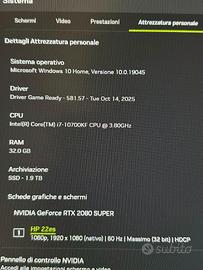 Vendo per inutilizzo questo PC Gaming MSI MEG Infinite X in condizioni eccellenti. Componenti: RAM: 32GB DDR4 RAFFREDDAMENTO: Upgrade a Liquido Cooler Master ML 120L V2 RGB(sostituito per massima affidabilità e silenziosità) SPAZIO: 1.9 Terabyte totali (SSD veloce + HDD secondario). CPU: Intel Core i7-10700Kf (fino a 5.1GHz) GPU: NVIDIA RTX 2080 Super 8GB GDDR6 Dedicati Windows 10 originale pre-installato. PC tenuto maniacalmente, mai fatto mining o overclock. Prezzo non trattabile.