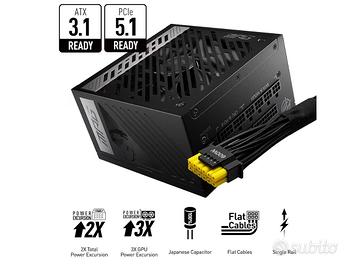 10 anni di garanzia MSI MPG A850G PCIE5, 850W Power Supply, 80 Plus Gold Certified, ATX 3.0 100% Modular, PCIe 5.0 GPU Support, 105°C Japanese Capacitors, 0% RPM Mode, Flat Cables - 10 Year Warranty