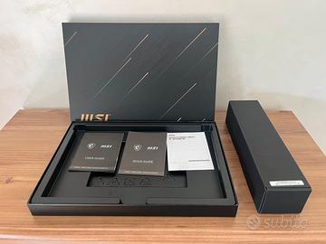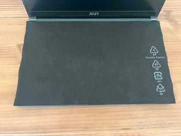 Notebook MSI Prestige 15 A12SC tenuto in perfette condizioni: - utilizzato per due anni - condizioni estetiche eccellenti: nessun segno di usura, graffi o difetti - alimentatore e cavo originali e in condizioni ottime - tutto completamente funzionante - scatola originale del pc e dell’alimentatore - panno antipolvere originale Specifiche tecniche: - Windows 11 Home - 16 GB di RAM - 1 TB di memoria (SSD) - scheda grafica NVIDIA GeForce GTX 1650 4GB - processore Intel i7 di 12ᵃ generazione 14 core - 2 porte USB-C - 2 porte USB - 1 porta per le cuffie - 1 porta HDMI - 1 porta per micro SD