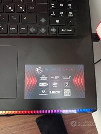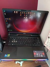 MSI Raider GE78 HX 14VHG-497IT, Notebook Gaming, 17" 16:10 QHD+ 240Hz, Intel i9-14900HX, Nvidia RTX 4080 GDDR6 12GB, 2TB SSD PCIe4,DDR5 32GB, WiFi 7, Win11 Home, QWERTY layout ITA e ancora in garanzia ufficiale MSI fino al 2027. Vendo per passaggio ad altra tipologia di computer. Descrizione del laptop: Raider GE78 HX 14V Il Raider GE78 HX 14V ti invita ad approfondire la vera essenza del gioco. Dotata di tecnologia all'avanguardia e di un'affascinante illuminazione a matrice, la serie Raider offre le specifiche di prim'ordine che cerchi. Mettiti sotto i riflettori e assapora l'emozione della vittoria. PRESTAZIONI ELEVATE PER I GIOCATORI GRAZIE AL PROCESSORE INTEL CORE i9 14900HX: Ti presentiamo il concentrato di prestazioni di gioco: il potente processore Intel Core i9 14900HX progettato per portare la tua esperienza di gioco a un livello superiore. Con l'elevato numero di core e le incredibili velocità di clock, questa CPU da gioco è progettata per fornire la velocità e la reattività che i giocatori desiderano. LAPTOP GEFORCE RTX SERIE 40 OLTRE LA VELOCITÀ La GPU NVIDIA GeForce RTX 4080 Laptop GPU è estremamente veloci. E' alimentata dall'architettura ultra efficiente NVIDIA Ada Lovelace che offre un salto di qualità sia in termini di prestazioni che di grafica basata sull'intelligenza artificiale. SOLUZIONE INNOVATIVA DI RAFFREDDAMENTO: Realizzato per la perfezione, il nostro ultimo design Cooler Boost 5 offre soluzioni termiche su misura sia per la CPU che per la GPU. Con ventole più grandi e heatpipe più ampie garantisce prestazioni ottimali anche durante le sessioni di gioco più intense. MMAGINI IMPAREGGIABILI: il Nuovo Raider GE78 HX è fatto su misura per i gamer. Con l'alta risoluzione e la frequenza di aggiornamento rapida potrai sperimentare un gioco realistico e un gameplay fluido. Mystic Light con design matrix: Il Raider GE78 HX è un punto di svolta per l'illuminazione RGB. La barra luminosa presenta una nuova estetica. Con 16,8 milioni di colori, pu