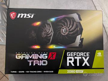 Vendo per upgrade hardware PC, scheda video MSI RTX 2080 Super Trio OC Plus 8Gb in condizioni perfette, pari al nuovo. Perfettamente funzionante e nei suoi imballi originali. Astenersi perditempo.