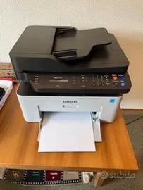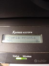 Stampante laser multifunzione Samsung Xpress M2070FW monocromatica usata in perfette condizioni estetiche e perfettamente funzionante, utilizza toner compatibili economici, connettività USB, LAN WiFi ,NFC,fax.dotata di fascicolatore ADF per scansioni e fotocopie multiple. corredata di cavi e CD per l'installazione. stampante appena manutenzionata e pronta all'uso. A BORDO UN TONER AL 70 % E UNO NUOVO INCLUSO NELLA VENDITA ANCORA SIGILLATO