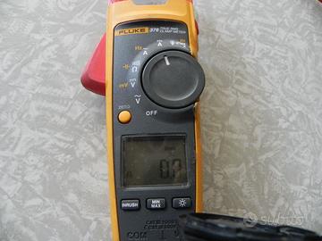 Pinza amperometrica Fluke 376 da riparare (funziona solo Ampere DC/ Ampere AC / Frequenza / I Flex / Inrusch / hold / retroilluminazione / Zero) . Non funzionano ingressi con puntali VDC/VAC/ Ohmetro / C / Continuità Riparabile presso ARO di Milano. Frusta I Flex 2500 A - 18 Perfettamente funzionante