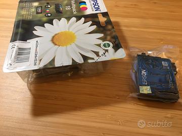 Multipack EPSON 4 colori Claria Home Margherita 18 originale + cartuccia singola colore CIANO serie 18 Margherita originale, mai aperto, come da immagine. Formato STD. Si vende per inutilizzo causa cambio stampante. SKU: C13T18064022 Cartuccia ink compatibile con stampanti Epson Expression Home XP-30, XP-102, XP-202, XP-205, XP-302, XP-305, XP-402, XP-405WH, XP-212, XP-215, XP-312, XP-315, XP-412, XP-312, XP-225, XP-325, XP-422, XP-322