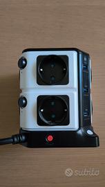 Multipresa a torre con spina shuko, 8 prese shuko, 6 prese USB.