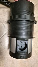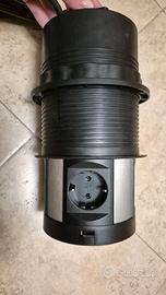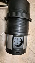 Legrand, Incara Tower 120, presa da incasso con sistema di sollevamento, presa multipla, 2 prese USB-A, 2 prese USB-C, 4 prese 2P+E, profondità di montaggio: 181,7 mm, 250 V, 15 W, alluminio/nero,