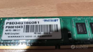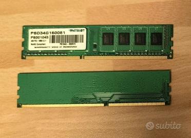 Vendo N.2 RAM Patriot DDR3 PC3-12800 4GB cadauna serie PSD34G160081 perfettamente funzionanti. Il prezzo totale di 9 euro è riferito a tutte e due le ram