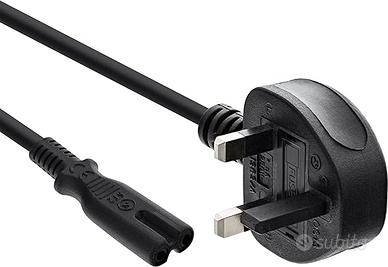 N. 2 Cavi Elettrici Alimentazione IEC C7 presa Gran Bretagna (Scozia, Inghilterra e Galles), Regno Unito Irlanda del Nord cm 180