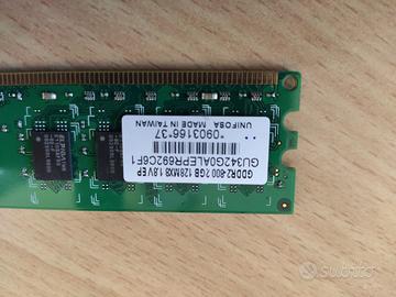 Vendo n.ro 4 banchi di memoria RAM gddr2 800 2GB 128Mx8 1.8 v Perfetta e funzionante praticamente quasi nuova. Vendo per dismissione pc fisso. Chiamare solo se interessati. posso spedire con spesa di euro 10,00 aggiuntiva. No scambi o varie. No perditempo. Chiamare ore pasti