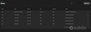 NAS HP MICROSERVER MAXATO STORAGE 56TB TRUENAS Vendo causa passaggio a sistema con 16 HD interessante Nas ProLiant Microserver Hp Enterprise gen 8 configurato come nas storage. Cpu sostituita con un Xeon E3-1265L Aggiunto controler IT SAS/SATA per la gestione dei 4 bay dischi Sono presenti 4 HD WD Ultrastar DC HC530 14TB SAS 12Gb/s - WUH721414AL5204, sono Unità di grado Enterprise, massima affidabilità e prestazioni costanti e duraturi. Western Digital dichiara per questo modello un MTBF di 2,5 milioni di ore. Posso tranquillamente fornire lo stato di ogni disco se necessario. E’ stato installato Truenas ultima versione su un aggiuntivo SSD dedicato, Il nas viene venduto appena reinstallato con l’ultima versione di Trune Nas Scale. Già pronto per l'utilizzo con già creato un array Raidz1 Come prestazioni grazie allo ZFS di truenas alla doppia scheda di rete ai 16 Gb di ram è sicuramente molto più performante ed espandibile dei vari synology qnap asustor di fascia medio alta che costano il triplo … Disponibile per qualsiasi test È presente la gestione remota Ilo di HP con una scheda di rete dedicata. INTEL XEON E3-1265L RAM 16 GB ECC SSD 90 GB PER S.O. 4x HD WD Ultrastar DC HC530 14TB SAS 12Gb/s - WUH721414AL5204 2x Lan 1Gb Se l’annuncio è ancora online vuol dire che il pc è ancora disponibile. Ritiro zona Clusone Bergamo.