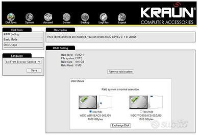 NAS Kraun mod. KR.QC (2 bay SATA - NO disks).