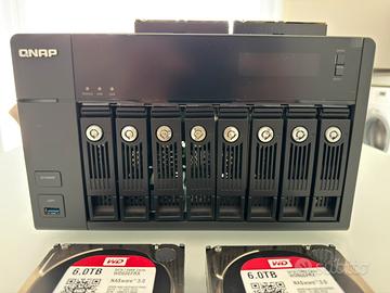 Vendo Qnap NETWORK ATTACHED STORAGE MODELLO: TVS- 871-I5-16GB; CONNETTIVITÀ:Numero porte LAN : 4 , 10 / 100 / 1000, Numero porte USB : 5 ; STORAGE:SATA, Numero Bay Totali : 8 , 0 Gb; PROTOCOLLI:Cifs, SMB, AFP, NFS, Http, Https, FTP, Ftps, Iscsi; LIVELLI RAID:RAID 0 (Striping), Raid 5, Raid 6, Jbod; CARATTERISTICHE TECNICHE:Office, SATA, Dischi interni EXT4 Dischi esterni - EXT4 - EXT3 - FAT - NTFS - HFS+, Supporto RAID, IPv4/IPv6. Vendo insieme anche 4 HDD WD RED da 6 TB ciascuno , in buono stato.