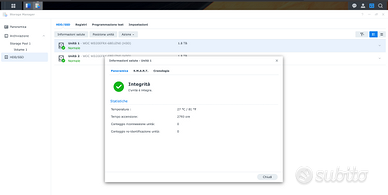 Vendo NAS Synology DS215j in buone condizioni e perfettamente funzionante, ideale per backup domestico, archiviazione di foto e video o per creare un piccolo cloud personale. Inclusi 2 hard disk WD Red da 2TB ciascuno (totale 4TB), progettati appositamente per sistemi NAS.