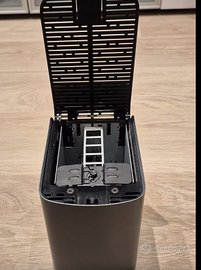 Vendo NAS Western Digital My Cloud EX2 (2-bay) Condizione: usato, funzionante, senza dischi interni e senza scatola originale. Cosa è incluso: Unità NAS + Alimentatore + Cavo Ethernet Cat.7 (NOTA: non sono inclusi dischi). Ideale per: backup domestico, server multimediale locale (DLNA), lavoro in home-office o piccolo ufficio, configurazioni RAID (0/1/JBOD). Facile da configurare Processore: Marvell ARMADA 370, 1,2 GHz (single core) Memoria RAM: 512 MB DDR3 Capacità: Fino a 8 TB totali (2 dischi x 4 TB) Porte / connettività: 1x Ethernet Gigabit, 2x porte USB 3.0