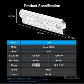 Netac RAM 32 Gb (2x16) DDR5 6000mhz CL 30