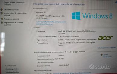 Netbook Acer con schermo touch. Tutte le caratteristiche sono presenti nelle foto. Usato, ma tenuto bene. SOLO RITIRO A MANO.