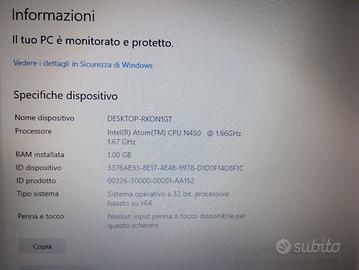 Considerate le caratteristiche hardware, le sue prestazioni non sono il massimo e per un utilizzo più performante è consigliabile l'upgrade della ram a 2GB e la sostituzione dell'hard disk originale con un disco ssd e/o installare una distro Linux.
