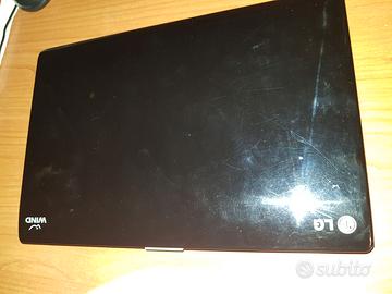 Netbook LG X110 funzionante, schermo 10,1 pollici, processore Intel® Atom N270 1,60 GHz Dual Core, HDD 250 GB, RAM 1 GB, scheda video Intel GMA 945, sistema operativo Windows 7 starter, batteria circa 1 ora di autonomia, carica batteria presente, segni di usura visibili in foto.