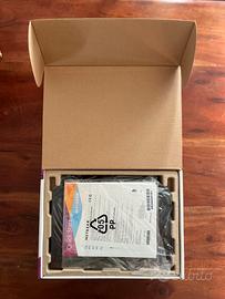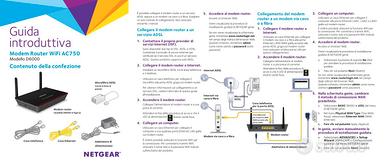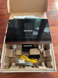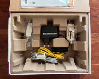 Vendo Modem Router NETGEAR AC750 WiFi (model D6000) per connessione a Internet con la fibra. Ampia portata di ricezione WiFi grazie a due antenne. Comprato nuovo e mai installato perchè ho utilizzato il modem del provider. Modem ADSL2+ e Access Point Integrato - Dual band Simultaneo AC - 300Mbps sulla banda 2.4GHz e 450 Mbps sulla band 5 GHz - Accesso e condivisione in modalità wireless di una stampante o un disco rigido USB - 4 porta 10/100/100 e 1 porta WAN - - Supporta connessioni ADSL o WAN (legata all'attivazione di una linea in fibra ottica) - Cavo Ethernet - Cavo Telefonico - Filtro ADSL - Guida all'installazione Confezione scatola intonsa