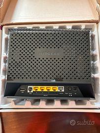 Router Nergear D6300 AC1600 wifi 300+1300 Mbps speeds dual band gidabit ADSL2+ modem, perfettamente funzionante le lucine interne delle icone di viasualizzazione in po fioche.