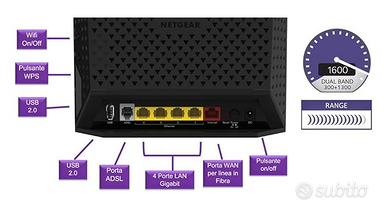 Il modem router NETGEAR AC1600 WiFi VDSL/ADSL con tecnologia Gigabit dual band è un modem router incredibilmente veloce che offre velocità WiFi AC1600 e Gigabit Ethernet.