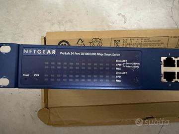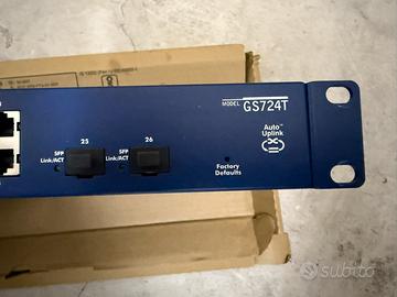 Vendo switch Netgear GS724T v4, Smart Managed, 24 porte Gigabit Ethernet, in ottime condizioni di funzionamento. ✨ Caratteristiche principali: •⚡ 24 porte Gigabit Ethernet •🖥️ Gestione Smart (VLAN, QoS, monitoraggio traffico) •🔇 Fanless (senza ventole) → funzionamento silenzioso •🔌 Completo di cavo di alimentazione •🔄 Ripristinato alla configurazione di default •🗄️ Staffe di montaggio per rack 19” incluse •🔎 Qualche piccolo segno estetico sul case esterno (solo estetica, 100% funzionante) •📦 Non dispongo della scatola originale ✅ Testato e pronto all’uso. 📍 Zona: Riva del Garda (TN) 🤝 Consegna a mano gradita – 🚚 spedizione disponibile a carico acquirente 💶 Prezzo richiesto: €100 (leggermente trattabili)