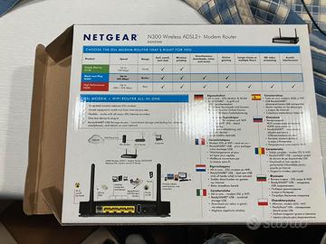 Router modem per linea fissa Netgear N300 Velocita massima 300Mbps 2 antenne per una distribuzione ottimale del segnale Completo di scatola originale, ricevuta d’acquisto e tutti gli accessori per il montaggio.