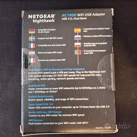 Vendo adattatore WiFi USB Netgear Nighthawk AC1900 (A7000), ideale per portare la connessione wireless ad alte prestazioni su PC e notebook.