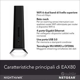 Vendo Netgear EAX80-100EUS Access Point\Ripetitore WiFi 6 Mesh AX6000, in ottime condizioni e perfettamente funzionante.