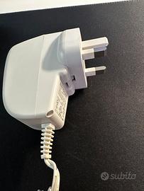 Uno dei due alimentatori originali ha la spina inglese (UK). Funziona perfettamente in Italia utilizzando un semplice adattatore da viaggio da pochi euro (tipo quelli per le vacanze), facilmente reperibile in qualsiasi negozio o supermercato.