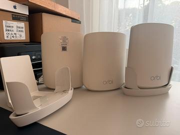 Vendo sistema WiFi Mesh NETGEAR Orbi RBK353 completo e perfettamente funzionante. Il kit comprende: - 1 router principale WiFi 6 - 2 extender/satelliti mesh - 2 supporti da parete (wall mount kit) Ideale per coprire abitazioni grandi, uffici o ambienti su più piani con una connessione stabile, veloce e senza zone morte. Caratteristiche principali: - Tecnologia WiFi 6 ad alte prestazioni - Copertura ampia e uniforme - Rete mesh intelligente con roaming automatico - Ottimo per smart working, streaming 4K, gaming e dispositivi smart home - Configurazione semplice tramite app Prodotto tenuto molto bene, vendo per cambio configurazione di rete. Disponibile per consegna a mano, oppure spedizione da concordare. Per info scrivetemi in privato.