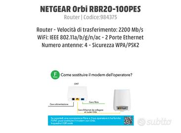 Vendesi per passaggio a nuovo router, questo router della netgear configurabile da web console e da app. Perfettamente funzionante tenuto in ottimo stato, completo di tutto. Acquistato da mediaworld quasi due anni fa. Consegno a mano in zona allianz stadium o faccio spedizione. Adatto per chi ha una connessione FTTH.