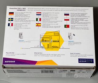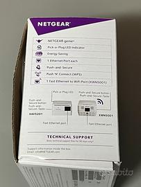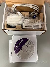 Trasmettitore linea Internet e Wi-Fi Netgear tramite presa elettrica 230V, completo di accessori originali.