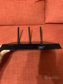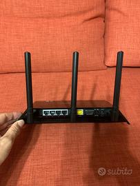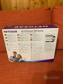 Vendo router Wi-Fi dual band Netgear AC1750 R6400, in ottime condizioni e perfettamente funzionante. Viene fornito con scatola originale, manuali, lealflet per la prima configurazione, cd di installazione, alimentatore e cavo LAN.