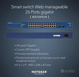 NETGEAR Switch Ethernet Smart 24 porte GS724T, Managed SFP Plus V4, Switch Gigabit con 24 da 1G, 2 SFP da 1G,
