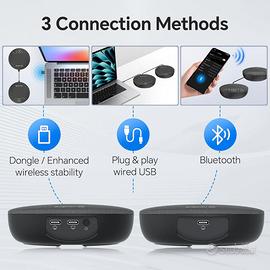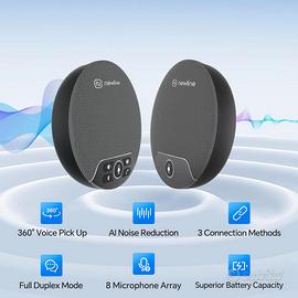 Riduzione del rumore AI e miglioramento vocale: l'altoparlante e il microfono per conferenze Newpie 90 adottano un algoritmo di sistema automatico AI. Il vivavoce Bluetooth ha una funzione di miglioramento vocale intelligente quando elimina il rumore di fondo generale come il rumore di digitazione della tastiera e il rumore dell'aria condizionata durante le riunioni, assicurando che il rumore venga eliminato, gli echi vengano soppressi e l'altoparlante può essere ascoltato, rendendo la comunicazione più efficiente.