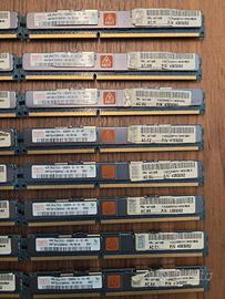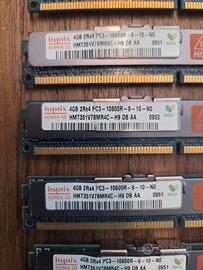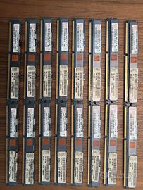 No.2 lotti 32GB (8x4GB) RAM DDR3 ECC Reg per Server IBM – PC3-10600R – FRU 44T1498 Descrizione del Prodotto Vendo No.2 lotti da 8 moduli ciascuno di memoria RAM professionale da 4GB ciascuno (totale 32GB), brandizzati SK Hynix con certificazione IBM. I moduli sono dotati di dissipatore metallico originale e sensore termico (indicato dal simbolo "HOT" sulla placca). Specifiche Tecniche: Capacità Singola: 4 GB Capacità Totale: 32 GB (8 moduli) (64gb in totale) Modello Hynix: HMT351V7BMR4C-H9 Velocità: PC3-10600R (DDR3-1333MHz) Configurazione: 2Rx4 (Dual Rank) Codici IBM: FRU 44T1498 / P/N 43X5052 Caratteristiche: ECC Registered, con dissipatore passivo. Compatibilità Server: Questi moduli sono specifici per server e workstation che supportano memorie Registered (RDIMM). Sono ideali per sistemi: IBM System x (x3550, x3650 M2/M3) IBM BladeCenter Altri server DDR3 che accettano moduli PC3-10600R (HP ProLiant, Dell PowerEdge, ecc. – verificare compatibilità specifica). ⚠️ ATTENZIONE: Queste memorie NON funzionano su PC desktop comuni (es. i3/i5/i7 consumer). Sono memorie per ambito server. Stato dell'oggetto: Memorie testate e funzionanti, smontate da ambiente professionale controllato. Esteticamente in ottime condizioni, complete di ologrammi di originalità.