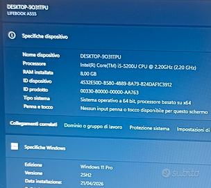 Fujitsu Lifebook A555 monitor 15.6” intel i5 2.20 ghz, ram 8 gb, ssd 240 gb, 4 usb 3.0, hdmi, vga, dvd/cd, bluetooth, scheda grafica intel hd graphics 5500, W.11 pro 25h2 con licenza digitale microsoft+ office 24 e altro, alimentatore originale, batteria ok, ottima estetica/funzionalità, qualsiasi prova prima dell’acquisto.