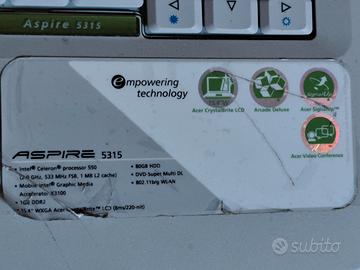 Vendo Notebook 15 pollici Acer Aspire Pc che funziona correttamente Intel Celeron SSD 500 gb Windows Lettore dvd webcam Vendo così come lo vedi Alla tastiera manca un tasto Batteria da sostituire Compreso di caricabatterie e scatola con vari CD