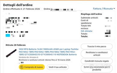 La batteria è stata sostituita a febbraio 2026 con una compatibile; la batteria originale la lascio nella borsa ma regge 10-15 minuti a carica piena, poi crolla improvvisamente.